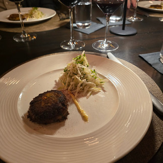 Sage dining room, Chef Covelli, RIISE wines, crab cake, braised oxtail, and short rib
