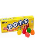 Dots. These gum drops, made by the fine folks that gave you Tootsie Rolls, are stick-to-your-teeth candies made in different fruit flavors. Pretty much pure corn starch, they are unremarkable and uninteresting candy with no redeeming qualities whatsoever. Flossing required after tasting these as they end up stuck between most if not all of your teeth.